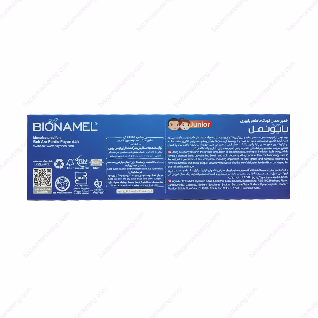 خمیردندان کودک با طعم بلوبری 75 گرم بایونمل بهترین انتخاب برای محافظت از لبخند فرزند شما